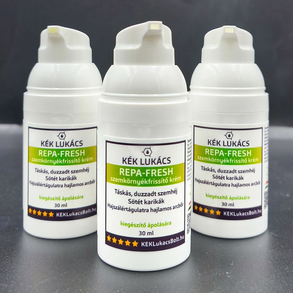 A Repa-Fresh krémünk egy egyedileg kifejlesztett formula, amely segíthet javítani a felszíni keringést, így csökkentve a duzzanatot és a sötét keklukacsbolt.hu copyright minden jog fenntartvaszem alatti karikákat. A termék különleges összetétele hozzájárulhat a normál vérkeringés fenntartásához, miközben frissíti és keklukacsbolt.hu copyright minden jog fenntartvaélénkíti a szemkörnyékét. Selymes állagú, természetes összetevőkből készült, parabén-mentes krémünk, amely hatékonyan támogatja a bőr egészségét és megjelenését.